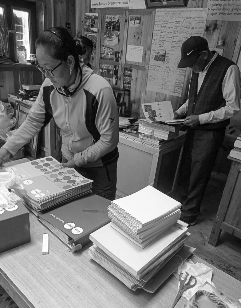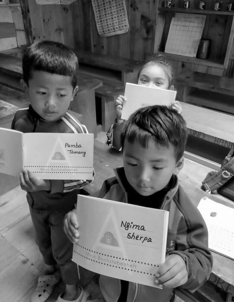Mit Hilfe von Mingmar Sherpa und Chhokpa Sherpa konnten die Bücher nach Nepal transportiert und an die Schule in Lumsa übergeben werden. Die Kinder nahmen die Materialien mit strahlenden Augen entgegen, und die Lehrer integrierten sie sofort in den Unterricht. Diese Bücher sind mehr als nur Lernmittel – sie sind ein Fenster zu neuen Möglichkeiten.